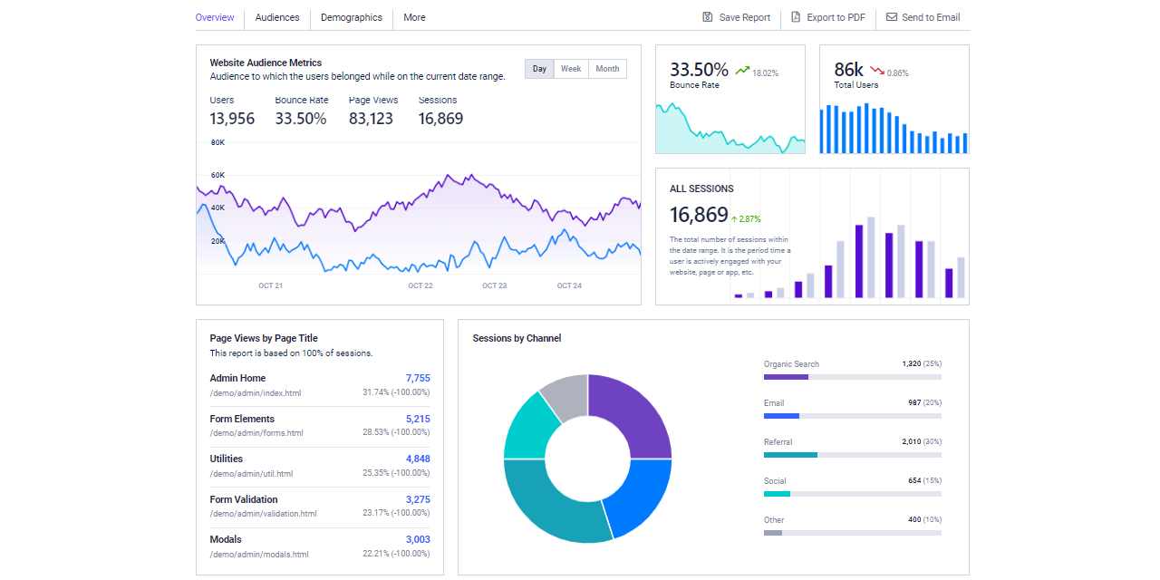 The template is highly customizable so that you can alter the design to suit your needs and give it a unique look and very well-documented to help you get started without any issues. The template has a colorful, attractive yet simple and elegant design. Although the template has a design like none other, it is easily customizable to suit your requirements. Azia Admin comes with a clean and well-commented code that makes it easy to work with the template. Thus making it an ideal pick for jump-starting your project.