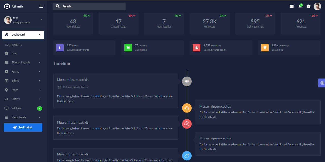 Atlantis Lite (Dark Layout) is a free bootstrap 4 admin dashboard that is beautifully and elegantly designed to display various metrics, numbers or data visualization. Atlantis Lite admin dashboard has 2 layouts, many plugins and UI components to help developers create dashboards quickly and effectively so they can save development time and also help users to make the right and fast decisions based on existing data.