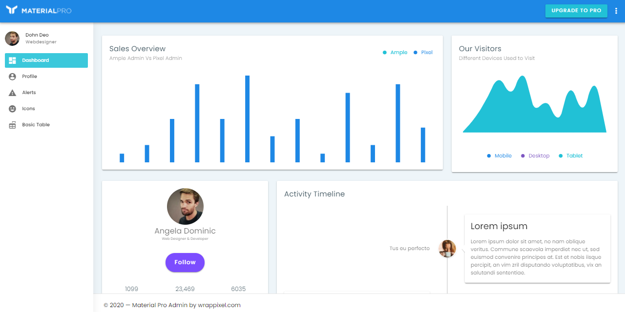 Crafted by WrapPixel - You can create high-quality and beautiful-looking interfaces for your web application or product using our MaterialPro Vuejs Admin Lite.