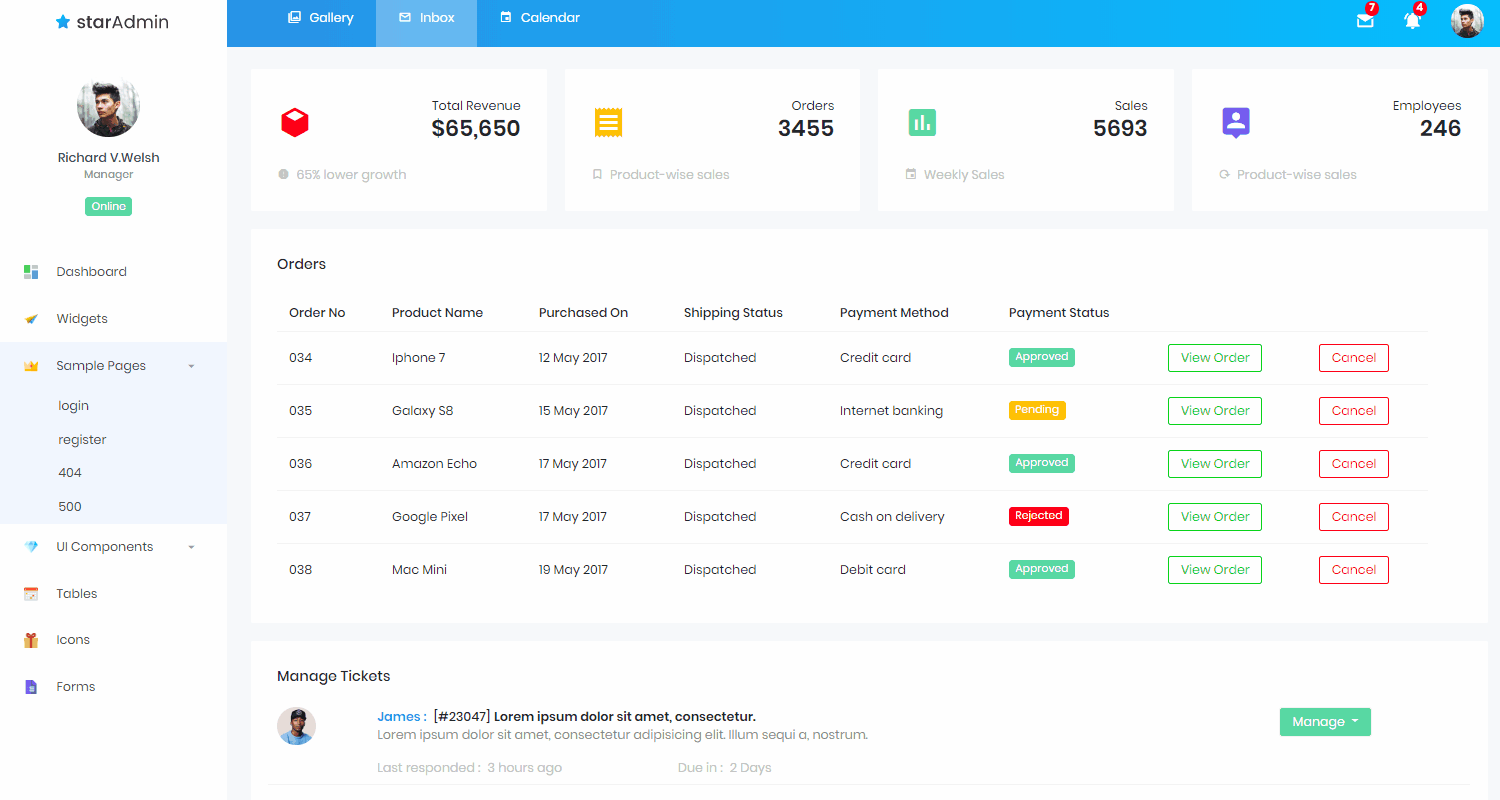 It comes with Google's Material based design and some great components, which makes your life much easier when you are creating a project. It comes with some nicely designed page templates to help you create new pages easily.